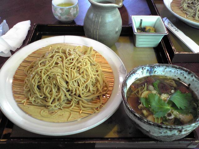 「ダッタンそば」といい、中国原産の「苦そば」とも呼ばれる苦味が強いそはだそうですが、俺はたいして苦いと感じた事はないです。ちょっとイビツな手作り感のある食器に盛り付けられているだけでうまそうに見えます。適度なコシ、食感が好きです。写真は俺がよく注文する「鴨つけ汁」のセット。この汁がまたウマイ。この「ダッタン」以外にも「北海道そば粉使用」と「竹炭そば」があり炭そばもウマイです。真っ黒です。メニューにはない「3点盛り」もこっそり注文できます(笑)
