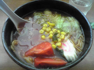 しょうゆベースにしっかりとトマトの酸味が活きたスープ。個体差はあるのかもしれないですがゆですぎ感のある麺、とどめのホットトマト。といったカンジで…。いや、食べたことない人は食べてみたほうがいいと思いますよ?