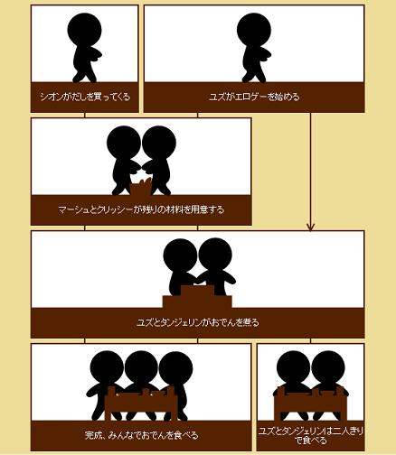 みかんとユズで「下ごしらえ」もかなり不安マンマンですが、最後に2人だけで食べてるトコから想像するに・・・(笑)