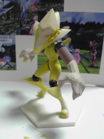 冬フェスで展示したモデルはPinky:st.と並べた時を意識した為、手の造形はかなり省略しましたがキャラクター性を出すためにあえて指を5本に、仰々しく、かなり大きめにアレンジしてみました。手の位置と顔の位置でいろんな表情が出せれば成功なんですが、肝心の顔がまだ出来ていませんね(笑)