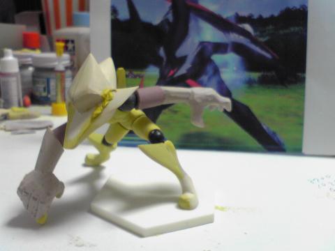 さらっと書いてあった「新作の腕」です。パテこねっぱなしと中途半端に削ったものです。それをザックリ削り出して二の腕を追加。本体に合体させてみました。