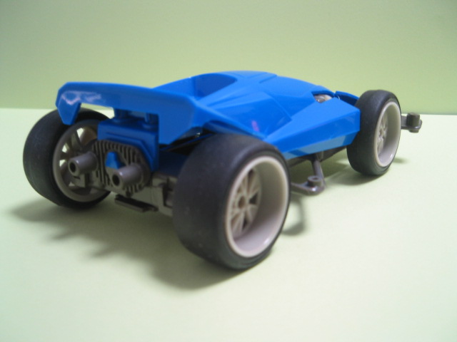 リアスポイラーが急激に跳ね上がってますが、ミニ四駆のラインって大体こんなもんだった気がする。個人的にはもっと寝ていた方が好みなんですけどねェ。