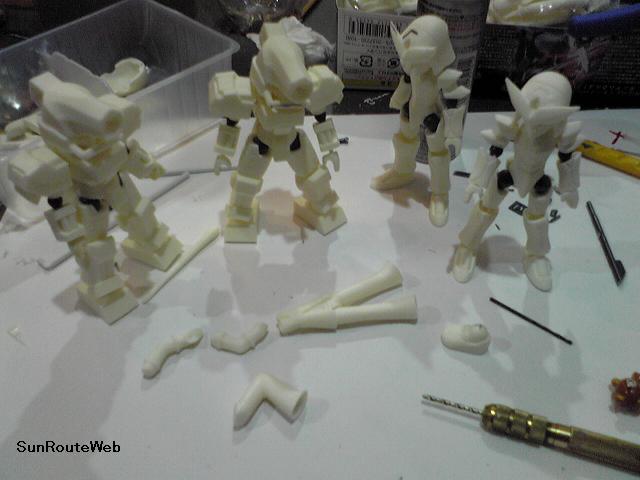写真、キャス男が4体並んでいますね。まぁ、同型でくくれば2種なんですが、コイツら身内オフィシャルカラーが赤なんです。なんとなく視覚的に赤味が多くなりそうなので、残りのヤツらは色替えで作るつもりです。