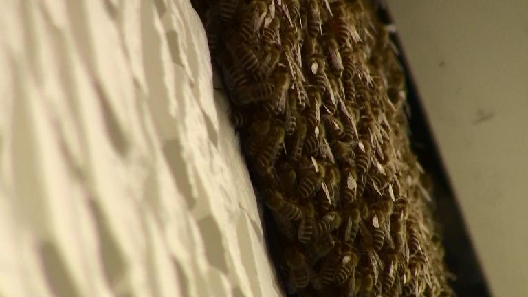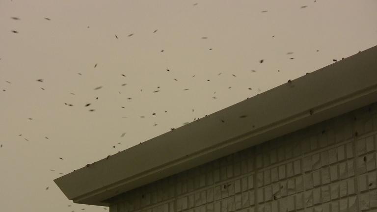 量が増えた蜂をわける為、新女王蜂を作って旧女王は部下を引き連れて分家になるらしいんです。その旅の途中みたいですね。