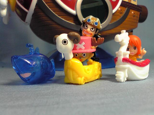 フランキーのサプライズでメリー号を復活させた小型船。麦わら海賊団皆が喜んだが、読者も大変喜んだであろうアイテム。設定では4人乗りですが本アイテムは1人乗り。ウソップは強引に引っ掛けて搭載しています。