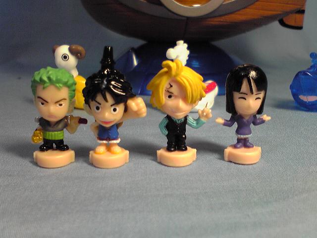 ゾロはまぁ塗装でなんとかわかるけど、ルフィは中国産クサイし、サンジは髪ボサボサだし、ロビンはただの笑顔のオネーサンだし。しょーがねぇなぁ、この時代、こんなフィギュアじゃ納得してもらえないよ?と言いたい。